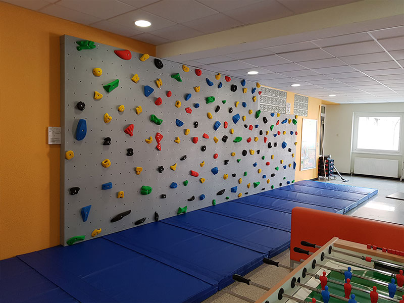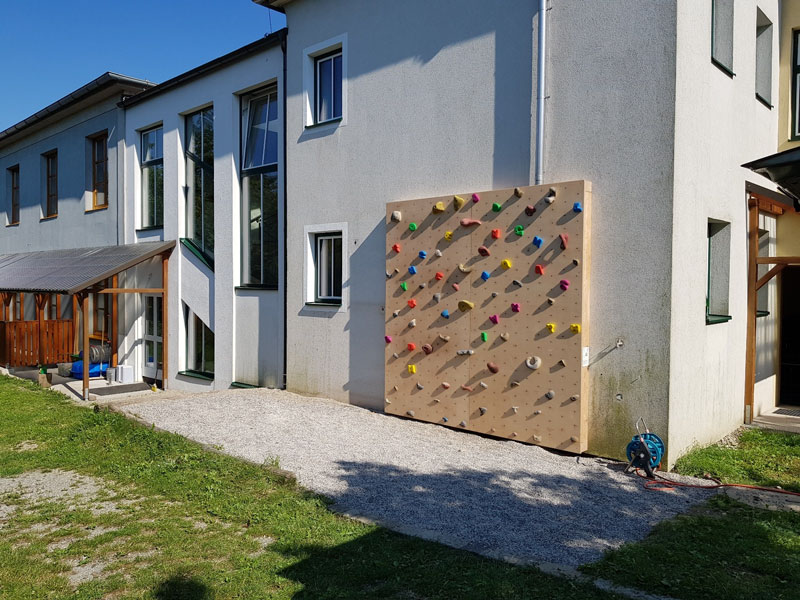 Fixe Kletterwände zum Bouldern und Vorstiegsklettern Wir machen auch klassischen Kletterwandbau. Wir planen, rechnen und bauen Boulder- und Vorstiegswände mit Holz- oder mit GFK Paneelen für indoor wie auch für outdoor. Zum Produktfolder Ausgeführte fixe Kletterwände