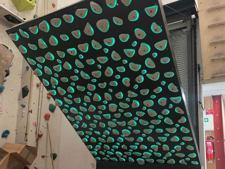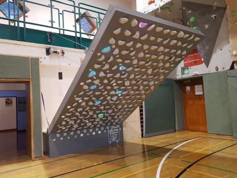 Wir bauen elektrisch oder mit Handwinde verstellbare oder fixe Tension, Kilter, Moon Boards inkl. LED Vorbereitung od. setzen Raster nach ihren Vorstellungen um. Wir installieren die LEDs und Griffe und nehmen ihr Board in Betrieb. Die Aufbaudicke bei unseren Boards beträgt bei elektrischer Verstellung 300 mm, mit Handseilwinde 181 mm. Bei nicht ausreichender Raumhöhe (um das gesamte Board senkrecht zu stellen) auch mit mitlaufendem Deckenpaneel.